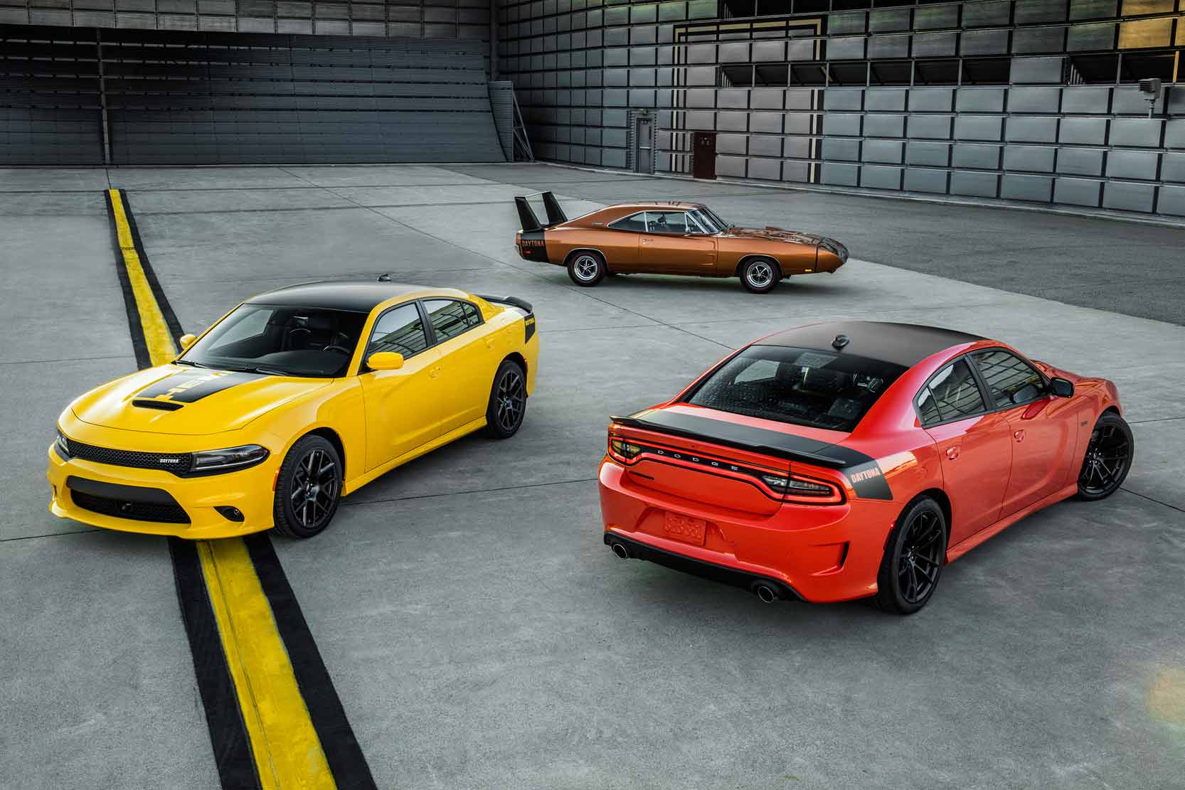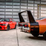 Année après année, sur l’avenue Woodward de Detroit, les fanas de Muscle Cars se retrouvent fin août pour présenter leurs nouveaux bolides. Cette année fut exceptionnelle : une rue débordant d’une multitude de Chevrolet Bel Air, Camaro, Ford Mustang et Dodge Charger. Mais cet événement est également l’occasion pour les firmes américaines de dévoiler leurs nouveaux produits. Et ce fut le cas chez Dodge qui présenta ses nouveaux modèles. C’est là qu’on a notamment pu découvrir les Charger et Challenger SRT Hellcat et leur moteur de 707 chevaux.Pour 2016, la marque propose sa berline Charger en version Daytona. Tout comme sur la génération précédente, la Charger a droit à une entrée d’air surdimensionnée, un échappement valvé et une calibration plus sportive du système antipatinage. Pour 2017, on a aussi droit à l’ensemble Super Trak Pack ainsi que des roues uniques. Finalement, on reconnaîtra la Charger Daytona à ses autocollants uniques.